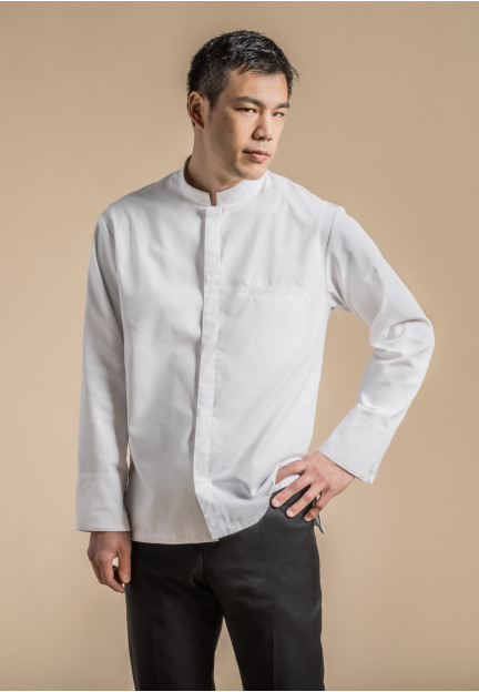 Hvítur langerma kokkajakki.