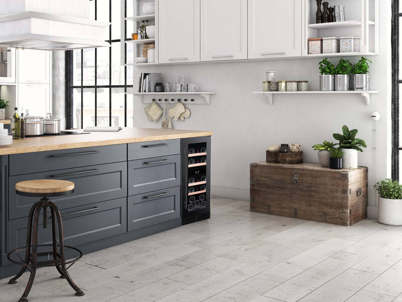 Innbyggi vínkælir inn í innréttingu  frá La Sommelieré.